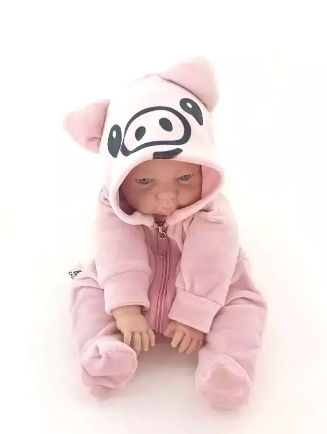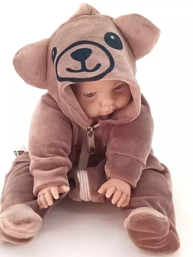 Bebote apariencia real 27cm. Tiene manos, pies y cabeza en plastisol y cuerpo relleno de vellón siliconado. Viene con osito con gorro con orjetas y chupete de palito. Trae DNI y librito de crecimiento.