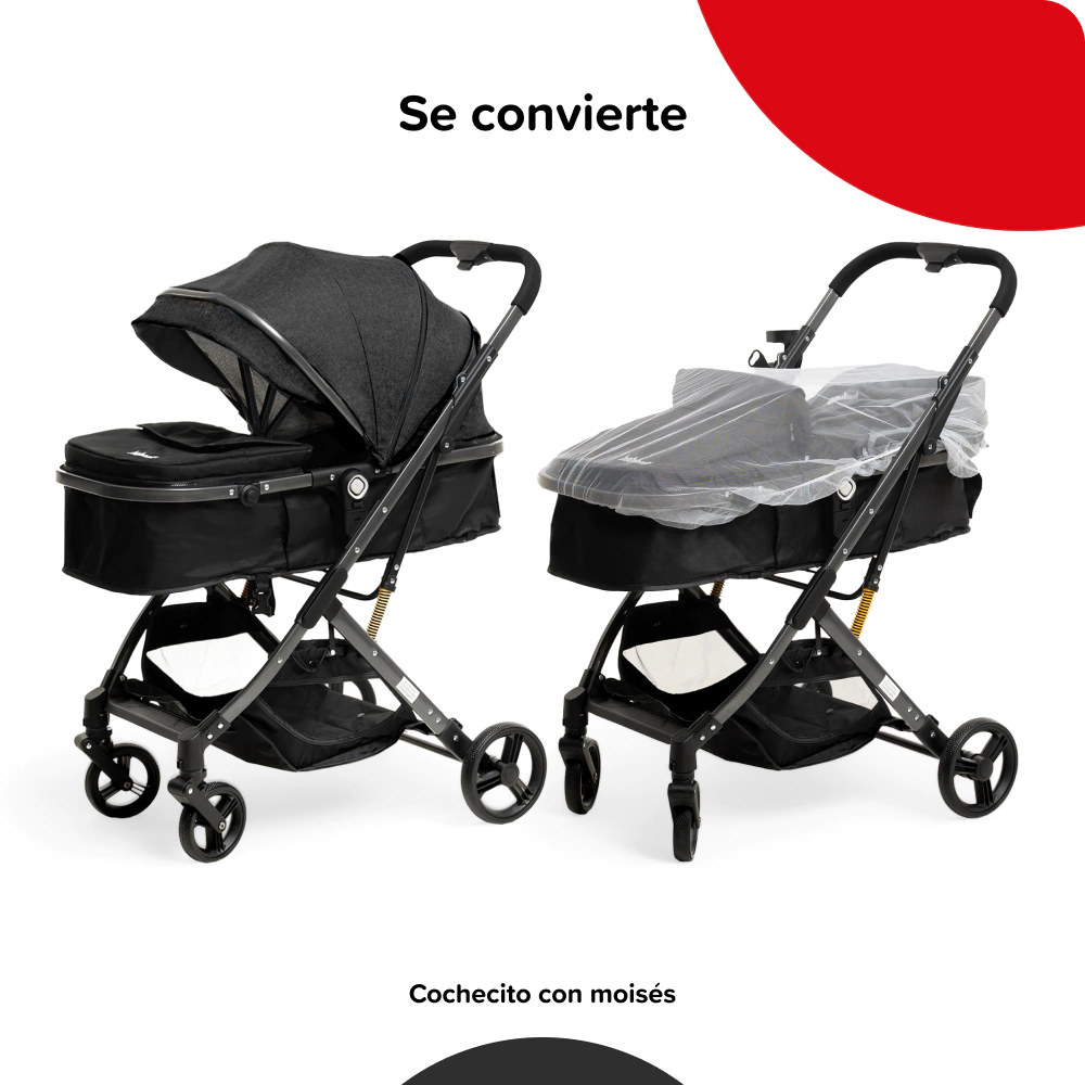 Múltiples funciones: Convertible en moisés, cochecito regular y huevito para el auto, ofreciendo versatilidad desde el nacimiento hasta los primeros años.